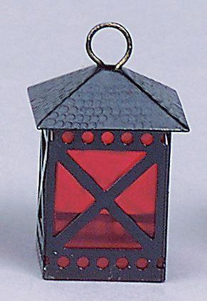 FADEDA Blechlaterne mit Einsatz rot , LxBxH in mm: 20x20x40. Für Krippen, Miniatur-, Hobby- und Modellbau, Puppenhauszubehör u. Modelleisenbahn.