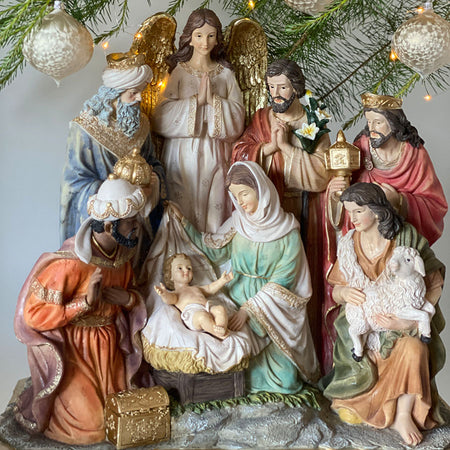 FADEDA Hlg. Familie, Krippenblock / Höhe:52 cm / handbemalt / detailgetreue Krippen Figuren - Weihnachten Tisch Dekoration Krippe Zubehör