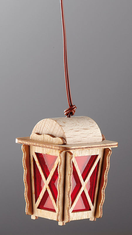 FADEDA Holzlaterne gelasert mit Einsatz rot und LED, LxBxH in mm: 20x20x35. Für Krippen, Miniatur-, Hobby- und Modellbau, Puppenhauszubehör u. Modelleisenbahn.