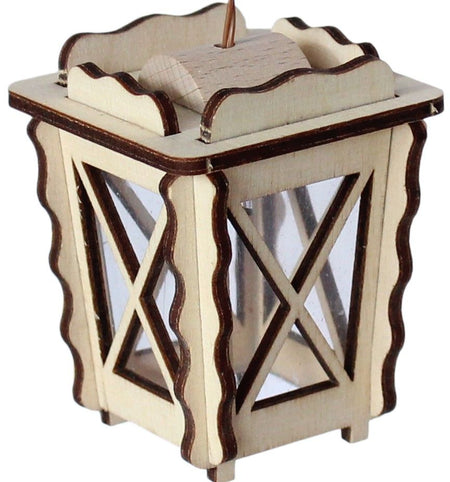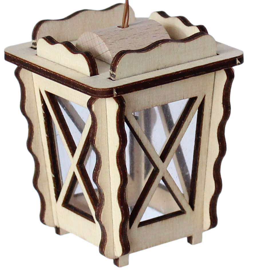 FADEDA Holzlaterne groß, 3,5V LED, LxBxH in mm: 45x45x60. Für Krippen, Miniatur-, Hobby- und Modellbau, Puppenhauszubehör u. Modelleisenbahn.