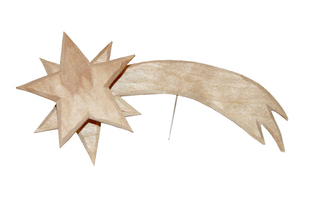 FADEDA Holzstern doppelt naturbelassen , handgearbeitet, Leuchtmittel mit Batteriebox und Flachbatterien, integrierte Stromversorgung mit LED Leuchtmittel und Befestigungsnadel , LxBxH in mm: 120x55x40. Für Krippen, Miniatur-, Hobby- und Mo