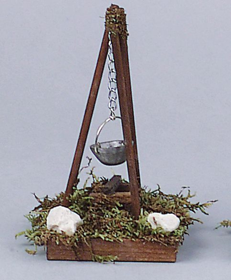 FADEDA Lagerfeuer mit Kessel, LxBxH in mm: 50x50x110. Für Krippen, Miniatur-, Hobby- und Modellbau, Puppenhauszubehör u. Modelleisenbahn.