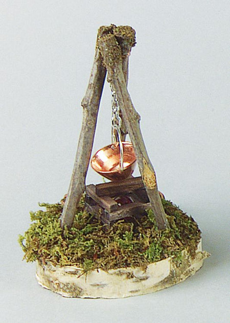 FADEDA Lagerfeuer mit Kupferkessel, LxBxH in mm: 51x51x41. Für Krippen, Miniatur-, Hobby- und Modellbau, Puppenhauszubehör u. Modelleisenbahn.