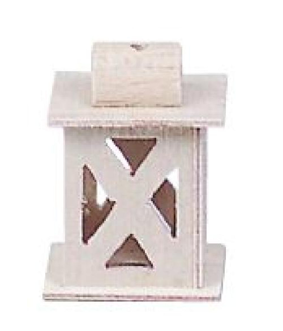 FADEDA LED Laterne aus Naturholz mit Kreuzverstrebung, LxBxH in mm: 15x15x30. Für Krippen, Miniatur-, Hobby- und Modellbau, Puppenhauszubehör u. Modelleisenbahn.