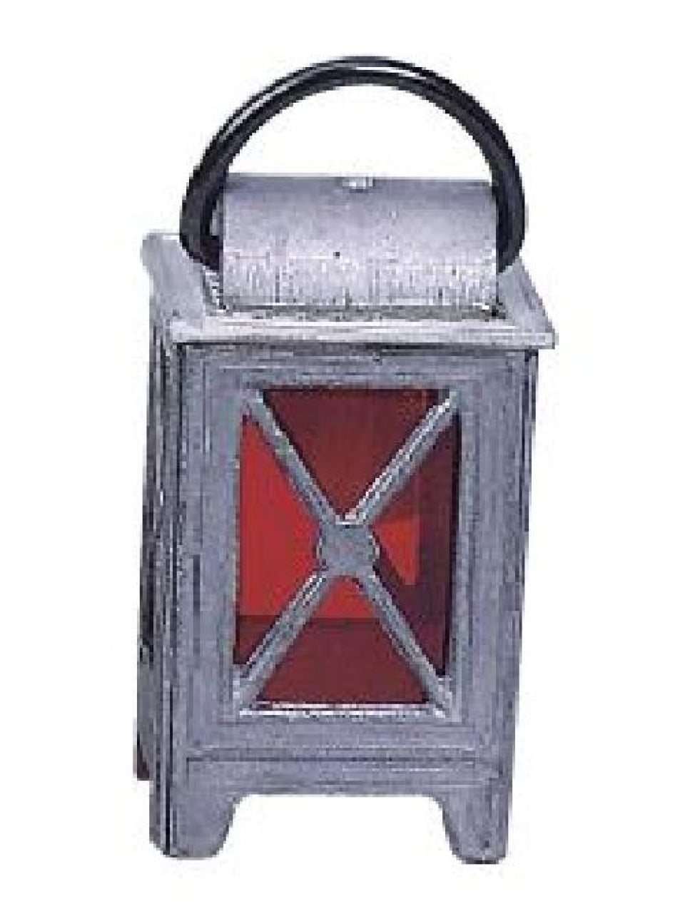 FADEDA LED Zinnlaterne mit Bügel und Einsatz rot, LxBxH in mm: 25x25x50. Für Krippen, Miniatur-, Hobby- und Modellbau, Puppenhauszubehör u. Modelleisenbahn.
