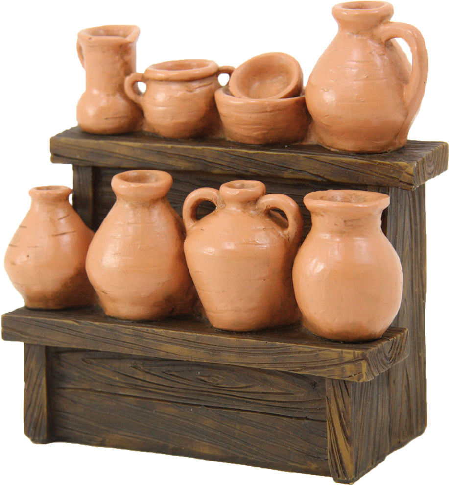 FADEDA Marktstand „Krüge“ / Höhe:12 cm / handbemalt / detailgetreue Krippen Figuren - Weihnachten Tisch Dekoration Krippe Zubehör