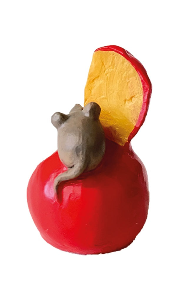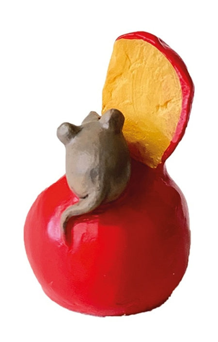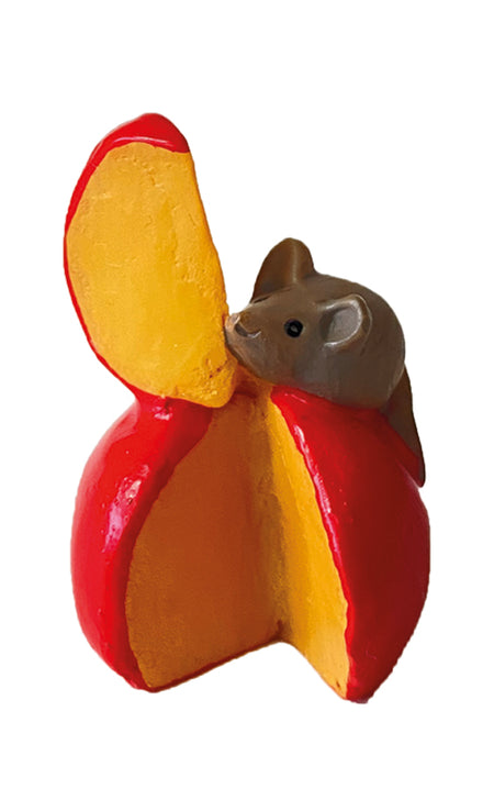 FADEDA Maus mit rotem Käse / Höhe:3 cm / handbemalt / detailgetreue Krippen Figuren - Weihnachten Tisch Dekoration Krippe Zubehör