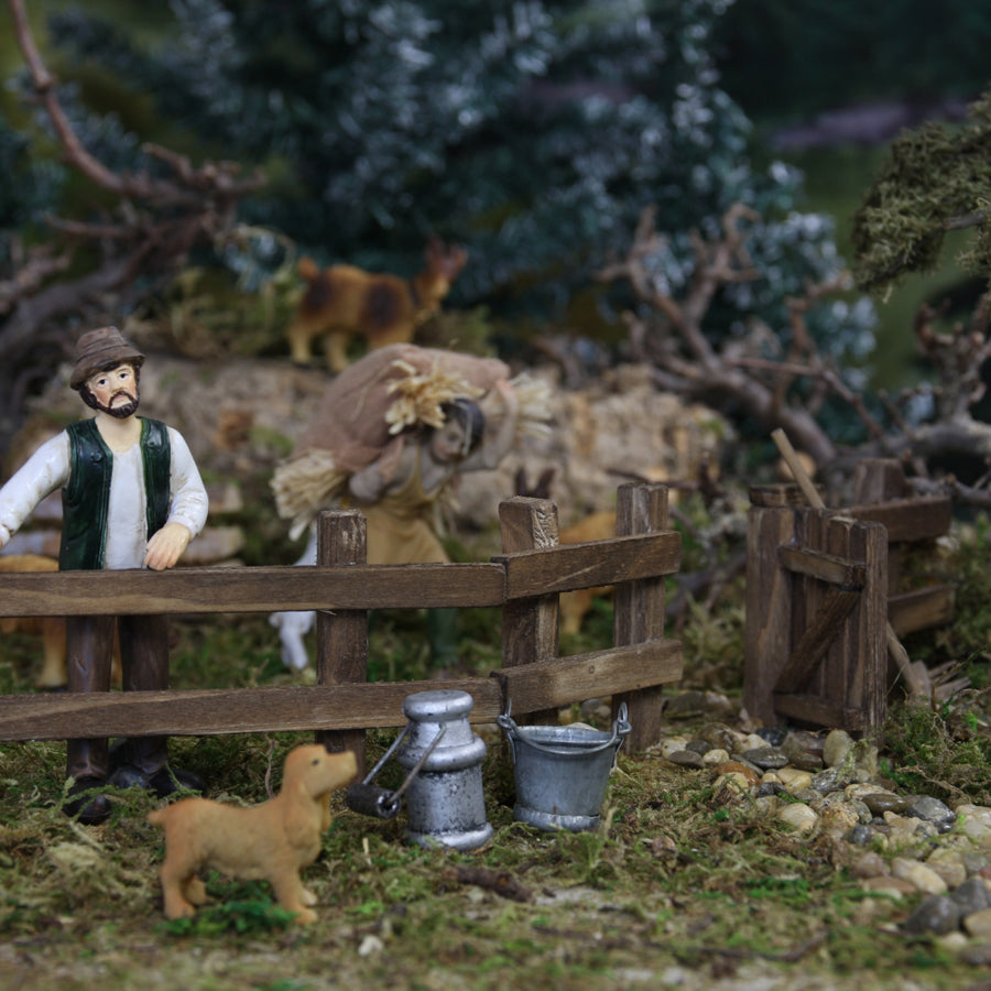 FADEDA Zaunstück mit beweglicher Tür / Höhe:8 cm / handbemalt / detailgetreue Krippen Figuren - Weihnachten Tisch Dekoration Krippe Zubehör